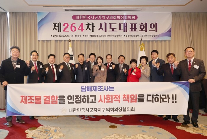 광주광역시자치구의회의장협의회장인 김명수 의장이 발의한 ‘담배제조물의 결함 인정 및 사회적 책임 이행 촉구 건의안’이 15일 홀리데이인 인천 송도 호텔에서 열린 제264차 대한민국시군자치구의회의장협의회 시도대표회의에서 채택됐다.