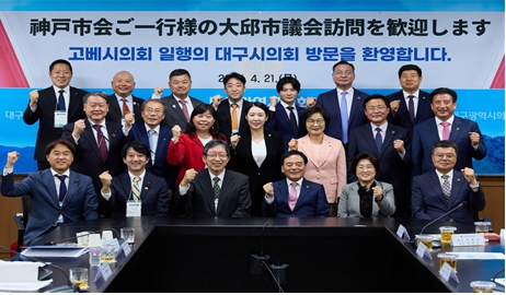 대구광역시의회는 4월 21일 14:00 시의회 2층 회의실에서, 고베시의회 대표단 환영 간담회를 개최하고, 양 도시의 지속적인 교류 협력을 약속했다.