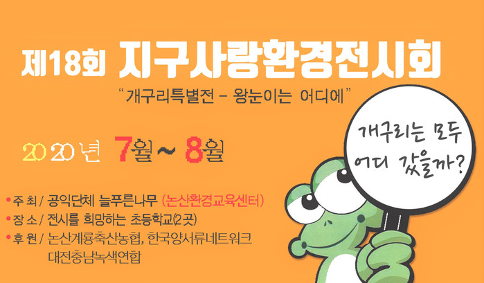 인간과 친근한 동물을 통해 자연과 환경의 중요성을 알리기 위해 실시해온 ‘지구사랑환경전시회- 개구리 특별전’이 올해는 ‘찾아가는 환경전시회’로 실시될 예정이다.
