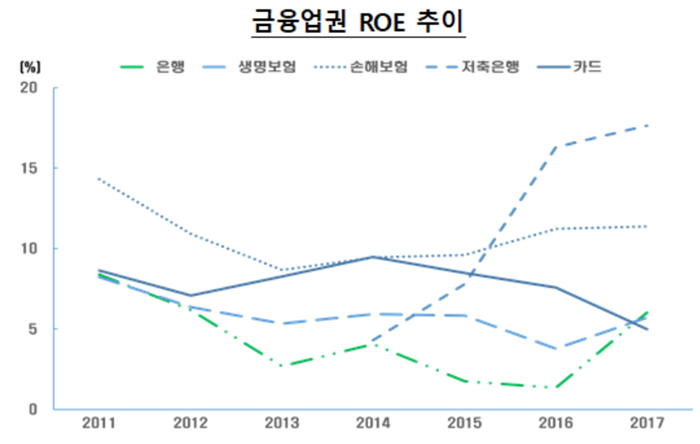 ROE비율 2017년 기준 5.0%…금융업권 최저 수준