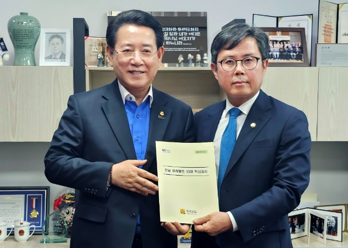 김영록 지사는 이날 ▲‘솔라시도 AI 에너지 신도시’ 조성 ▲나주 ‘에너지 AI 모델시티’ 조성 ▲‘석유화학·철강산업’ 대전환 메가 프로젝트 추진 ▲‘AI 첨단 농·축산업 융복합 지구’ 조성 ▲우주발사체 특구 내 ‘제2우주센터’ 조성 ▲무안국제공항, ‘동북아 대표 관문공항’ 육성 등 전남도가 지역 미래발전을 위해 최우선적으로 대선공약에 반영시킬 10대 핵심과제를 설명하고, 정당 공약에 채택되도록 협조를 구했다.