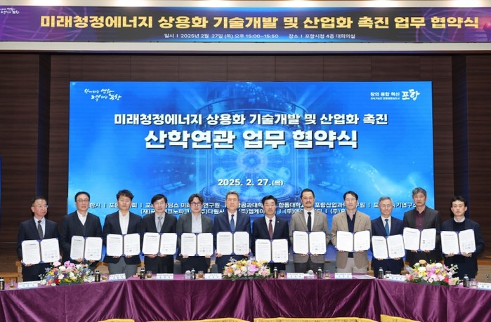 이강덕 포항시장은 “산·학·연·관의 긴밀한 협력으로 포항시가 미래청정에너지 기술의 상용화 및 산업화에 앞장서 글로벌 에너지 시장에서 경쟁 우위를 확보할 것”이라며, “우수한 연구인프라를 적극 활용해 미래 에너지 패러다임을 선도하고 새로운 산업 기회를 창출하겠다”고 강조했다.