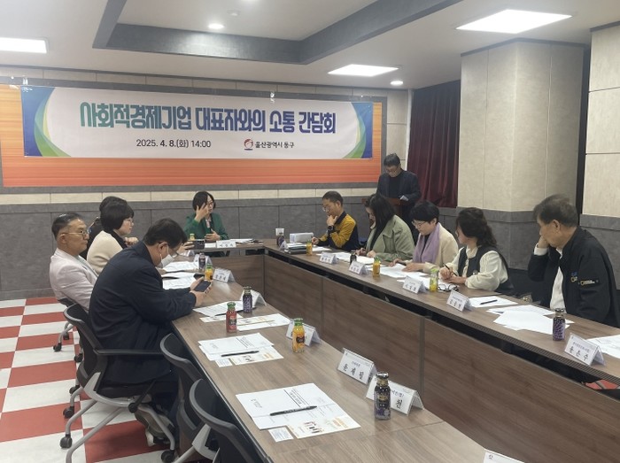 울산 동구는 4월 8일 오후 2시 2층 소회의실 동구 사회적경제 기업 협의회(회장 손은형)를 비롯한 지역 내 사회적경제 기업 대표와 관계자 16명이 참석한 가운데 소통 간담회를 개최했다.