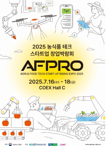 농림축산식품부는 농식품 분야 첨단기술을 홍보하고, 농식품 분야 유망 창업기업의 판로확보와 투자유치를 지원하기 위해 '2025 농식품 테크 스타트업 창업박람회(AFPRO 2025)'를 7월 16일부터 18일까지 3일간 서울 삼성동 코엑스(Hall C)에서 개최한다.