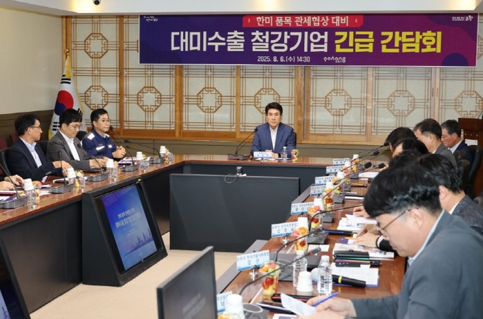 포항시는 6일 시청 중회의실에서 한미 관세협상 타결에 따른 철강업계의 대응 방안을 논의하기 위해 긴급 간담회를 개최했다.