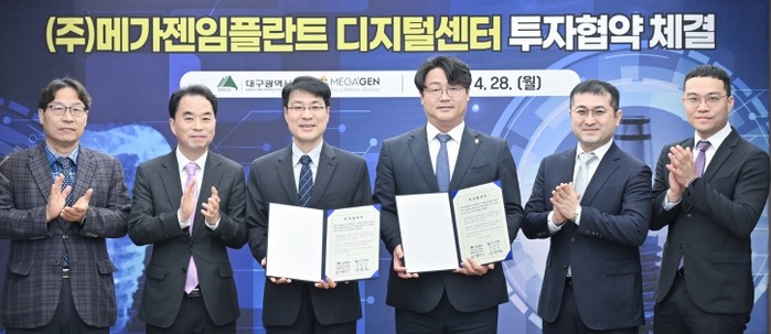 대구광역시는 28일 대구시청 산격청사에서 국내 임플란트 매출 2위 기업인 ㈜메가젠임플란트(대표 박광범)와 ‘디지털센터’ 건립 투자협약을 체결했다.