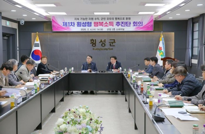횡성군이 4일 군청 소회의실에서 ‘제1차 횡성형 행복소득 추진단 회의’를 개최하고 군민 소득 증대를 위한 구체적 실행 방안 논의에 착수했다.