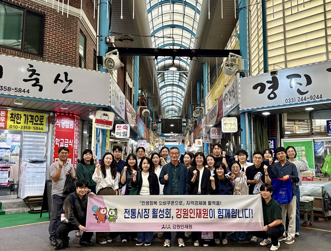 강원인재원은 2025년 추석 명절을 맞이하여 전통시장에 활력을 불어넣고 지역경제 회복을 지원하기 위해 9월 30일 춘천 후평일단지시장에서 장보기 행사를 진행했다고 밝혔다.