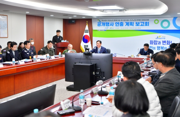 보고회는 전남체전 홍보영상 시청을 시작으로 △대회 준비상황 보고 △연출계획 보고 △질의응답‧의견수렴 순으로 진행됐다.