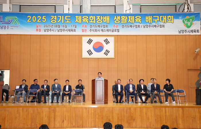 남양주시는 16일 금곡실내체육관에서 열린 ‘2025 경기도 체육회장배 생활체육 배구대회’ 개회식에 주광덕 시장이 참석해 참가 선수단을 직접 격려했다고 밝혔다.