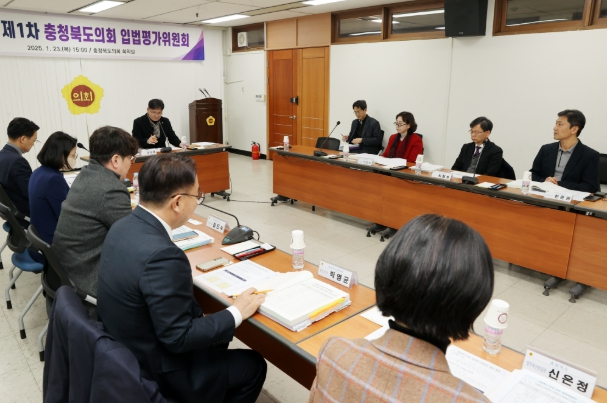 충북도의회는 23일 도의회 회의실에서 입법평가위원을 위촉하고 제1차 입법평가위원회 회의를 개최했다.