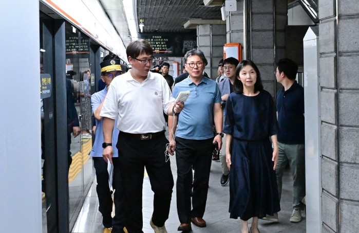 최호정 서울특별시의회 의장은 9일 냉방시설이 없는 3호선 경복궁역을 긴급 현장점검하고, 서울지하철 노동자와 시민 보호를 위해 냉방보조기기 설치가 시급하다고 밝혔다. 점검에는 김지향 의원(시민권익위원장)도 함께했다.