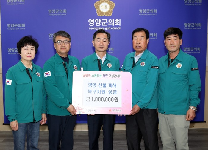 고성군의회는 2019년에 겪은 산불 피해의 아픔을 되새기며, 현재 같은 아픔을 겪고 있는 영양군민들에게 위로와 힘을 전하고자 성금을 마련했다. 성금과 함께 “산불로 삶의 터전을 잃은 주민들이 하루빨리 일상을 회복하고 생활이 안정되기를 바란다”는 따뜻한 마음도 전했다.