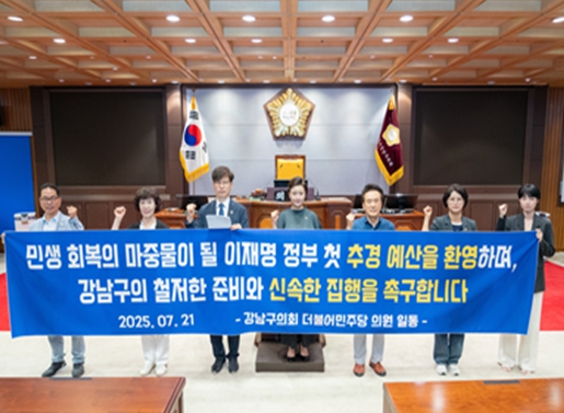 ‘민생회복 소비쿠폰’의 1차 신청이 시작된 가운데, 강남구의회 더불어민주당은 이재명 정부 첫 추경 예산의 신속한 통과를 환영하며, 강남구의 철저한 준비와 신속한 집행을 촉구했다.