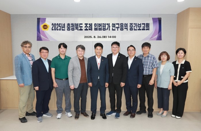 충북도의회는 26일 의회 신청사 회의실에서 ‘충청북도 조례 입법평가 연구용역’ 중간보고회를 개최했다.