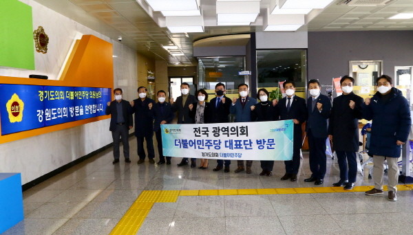 경기도의회 더불어민주당 수석대표단은 21일(월) 광역의회교섭단체협의회 구성 및 지방의회법 제정 등에 대해 논의하고 공감대를 형성하기 위해 강원도의회 교섭단체 더불어민주당(대표의원 허소영, 춘천5)을 방문했다.