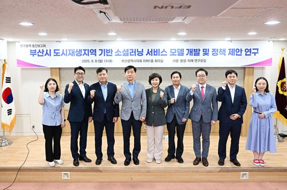 김재운 대표의원은 “착수보고회를 통해 연구 방향을 잡고, 간담회에서 주민과 현장이 직접 참여했으며, 오늘은 그 성과를 점검하고 제도화 전략을 구체화하는 자리였다”며, “소셜러닝은 단순한 운동을 넘어 건강·돌봄·안전·문화가 결합된 부산형 지역 돌봄 모델로서, 시민이 주도하는 지속가능한 사회서비스 체계를 만들어갈 것”이라고 강조했다.