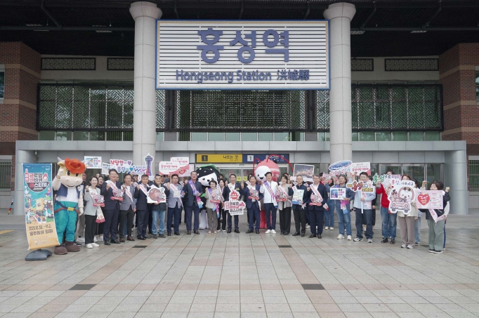 군수·부군수 등 홍성역 총출동, 환영 인사와 함께 관광·축제 매력 홍보