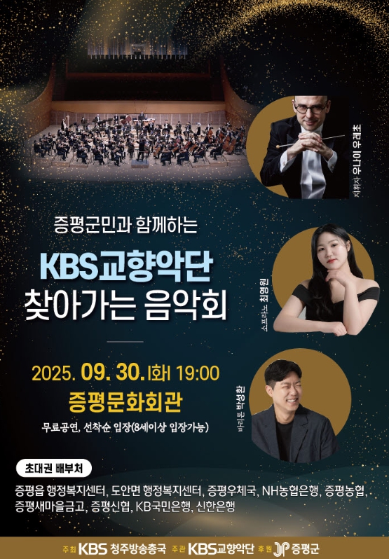 이번 공연은 세계적 수준의 연주로 사랑받는 KBS교향악단이 증평을 직접 찾아 선보이는 무대로, 군민들에게 품격 있는 문화예술 향유의 기회를 제공하고 클래식 음악의 매력을 널리 알리기 위해 마련됐다.