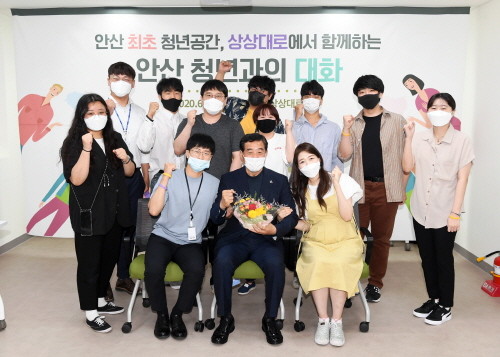 전날 상상대로에서 진행된 ‘안산 청년과의 대화’ 간담회는 윤화섭 안산시장 등이 참석한 가운데, 시설 조성을 기념하고 코로나바이러스감염증-19(코로나19) 장기화 등으로 지친 청년들의 근황을 공유, 청년정책에 대한 의견을 듣기 위한 자리로 마련됐다.