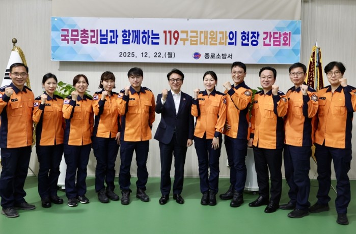 김민석 국무총리는 12월 22일 서울 종로소방서를 방문하여 응급환자이송체계 최일선에 있는 119구급대원의 의견을 듣는 자리를 가졌다.