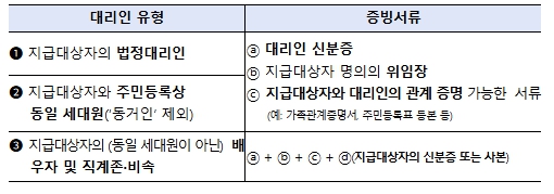 ▲ 대리인 유형별 필수 지참서류 |