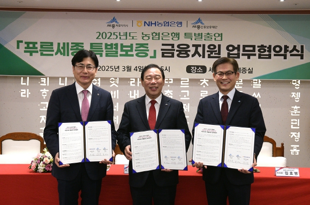 이날 협약식에는 최민호 시장, 홍순옥 농협은행 세종본부장, 김효명 세종신용보증재단 이사장이 참석해 지역 경제 활성화를 위한 긴밀한 협력을 다짐했다.