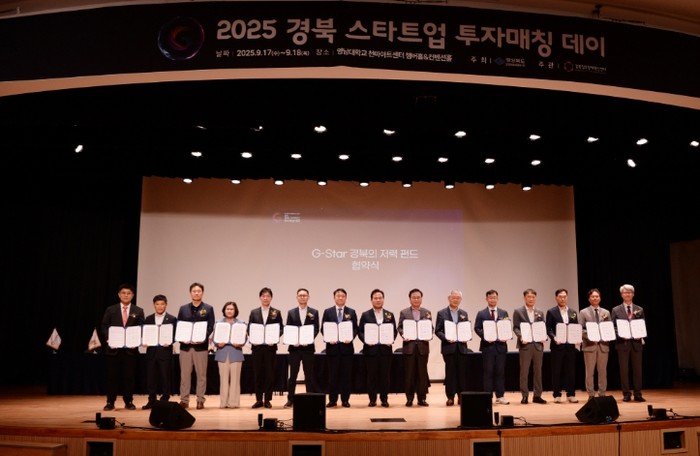 18일 영남대학교 천마아트센터에서 『2025 경북 스타트업 투자매칭 데이』 행사가 성황리에 진행 중인 가운데, '지스타(G-Star) 경북의 저력 펀드' 결성식이 개최됐다.