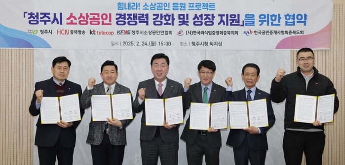 청주시는 24일 청주시 소상공인 경쟁력 강화와 성장 지원을 위해 HCN충북방송, KT텔레캅 충남충북본부와 업무협약을 체결했다.