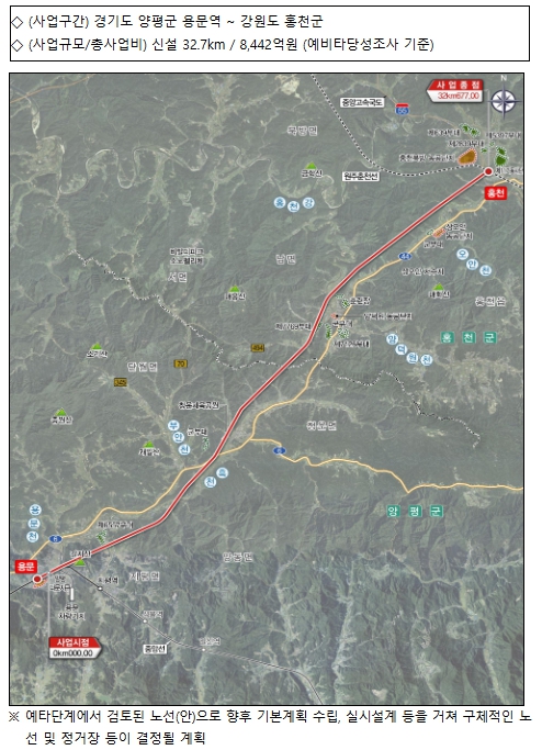 | ▲ 용문~홍천 광역철도 사업개요 및 위치도 |