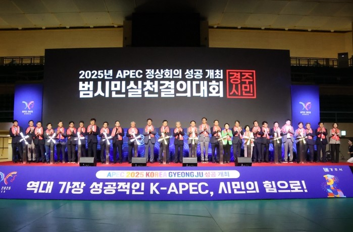 시는 30일 경주실내체육관에서 ‘2025년 APEC 정상회의 성공개최 범시민실천결의대회’를 성황리에 개최했다고 밝혔다.
