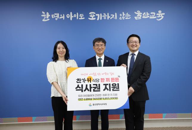 울산광역시교육청은 30일 교육청 접견실에서 북구 진장동 한가위 식당에서 지원하는‘한 끼 든든 식사권’ 전달식을 열었다.