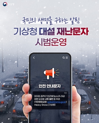 → 인명·재산피해가 예상되는 대설 발생 시 기상청에서 직접 대설 실황과 유의사항 등을 포함한 '대설 재난문자'를 해당지역에 발송