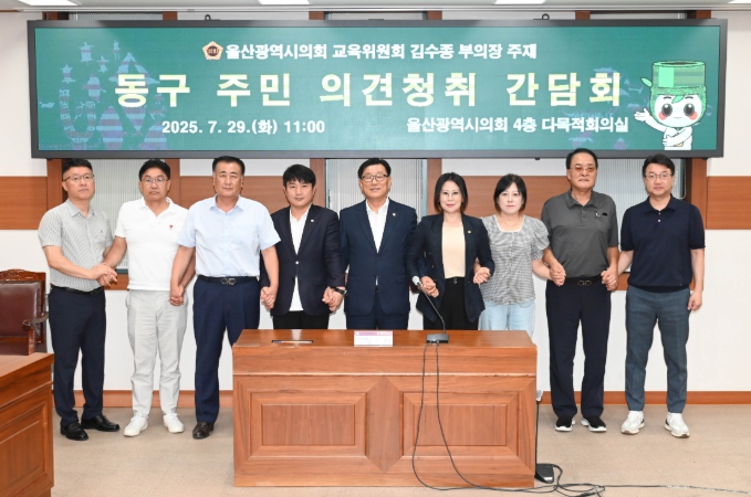 울산광역시의회 김수종 부의장(교육위원회, 방어ㆍ화정ㆍ대송동)은 29일 오전, 시의회 4층 다목적회의실에서 ‘해양레저관광 기반 조성과 지역경제 활성화’를 주제로 동구 주민 의견청취 간담회를 개최했다.