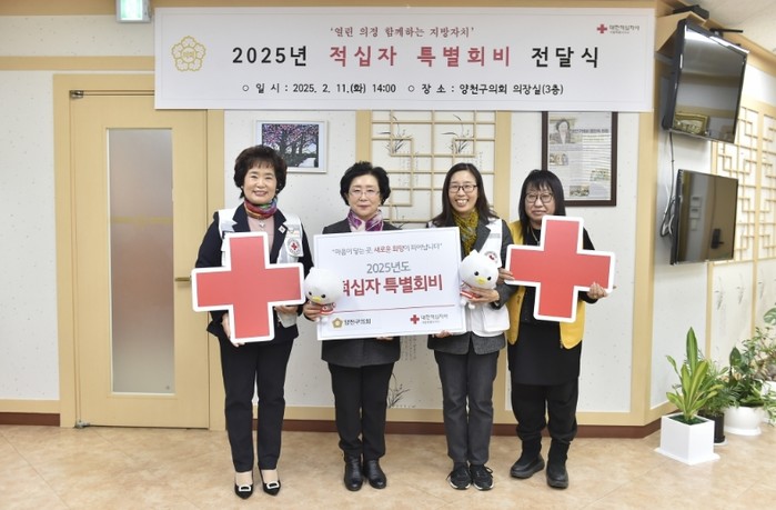 서울시 양천구의회는 2월 11일, 의장실에서 대한적십자사 서울지사에 2025년 적십자 특별회비를 전달하며 나눔의 뜻을 전했다.