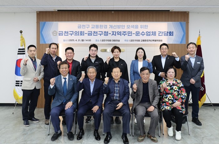서울특별시 금천구의회는 4월 21일 금천구의회 3층 대회의실에서 의회, 구청, 주민, 운수업체가 한자리에 모여‘금천구 교통환경 개선방안 모색을 위한 간담회’를 개최했다.