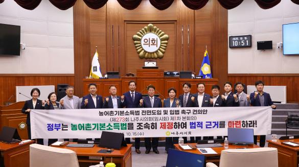 | ▲ 나주시의회, ‘농어촌기본소득법 전면도입 및 입법 촉구 건의안’ 채택 |