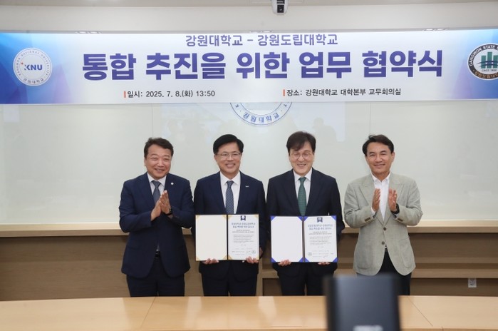 오늘(7월 8일) 오후 2시, 강원대학교에서 강원대-강릉원주대-강원도립대 간 통합 추진을 위한 업무협약(MOU)이 체결됐다.