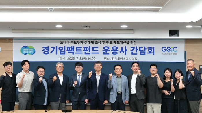 경기도와 경기도사회적경제원은 3일 경기도청 서희홀에서 사회혁신경제 분야의 임팩트투자 확산을 위한 ‘경기임팩트펀드 투자사 간담회’를 열었다.
