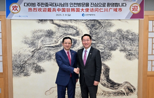 유정복 인천광역시장은 2월 9일 다이 빙(戴兵) 신임 주한 중국대사를 만나 부임을 축하하고, 한중 지방정부 간 교류 활성화 및 실질적 우호 협력 방안에 대해 의견을 나눴다.