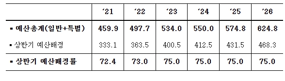 전체 세출예산의 75.0%를 상반기에 배정