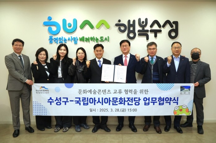이번 협약은 수성구와 국립아시아문화전당 간 문화적 연대를 더욱 강화함으로써, 지역 예술인들에게 창작과 교류의 기회를 제공하고, 구민들에게는 더욱 풍성한 문화예술 콘텐츠를 선보이는 계기가 될 것으로 기대된다.