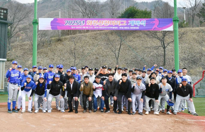 2025 화천 산천어 야구리그 개막식 및 개막경기가 6일 간동면 간동야구장에서 최문순 군수, 박대현 도의원, 조웅희 군의회 부의장, 송호관 군체육회장을 비롯한 선수들이 참석한 가운데 열렸다.