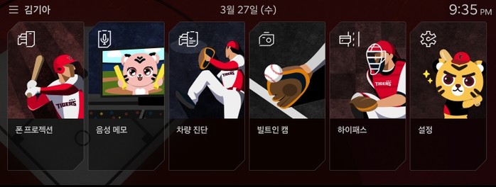 ‘KBO 디스플레이 테마’는 차량 내 대화면 ccNC(connected car Navigation Cockpit) 디스플레이의 색상 및 그래픽을 자신이 응원하는 구단에 맞게 커스터마이징할 수 있는 맞춤형 디지털 상품으로, ▲ KBO 리그 소속 10개 구단의 팀 로고, 키컬러가 반영된 클러스터 ▲ 팀 마스코트와 유니폼을 착용한 선수 일러스트로 구성된 인포테인먼트 홈카드 및 프로필 ▲ 팀 마스코트가 내 차의 위치를 표시하는 내비게이션 등으로 구성된다.