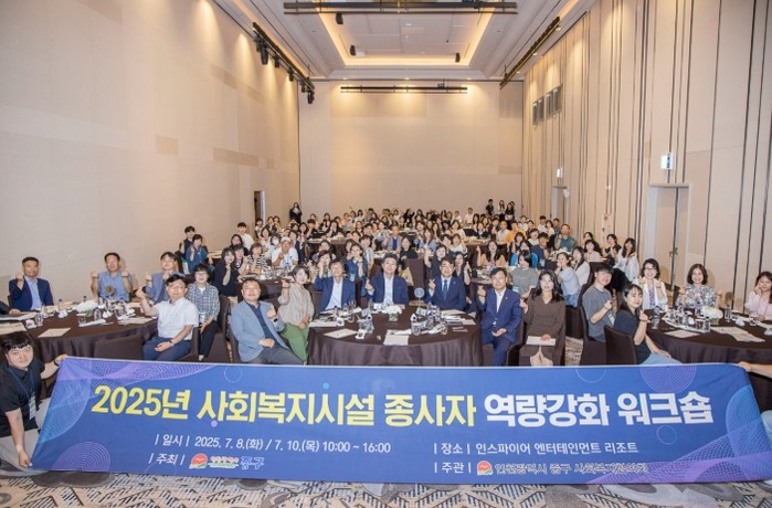 인천 중구의회는 7월 8일, 인스파이어 리조트에서 열린 ‘2025년 사회복지시설 종사자 역량강화 워크숍’에 참석해 종사자에게 격려의 뜻을 전했다.