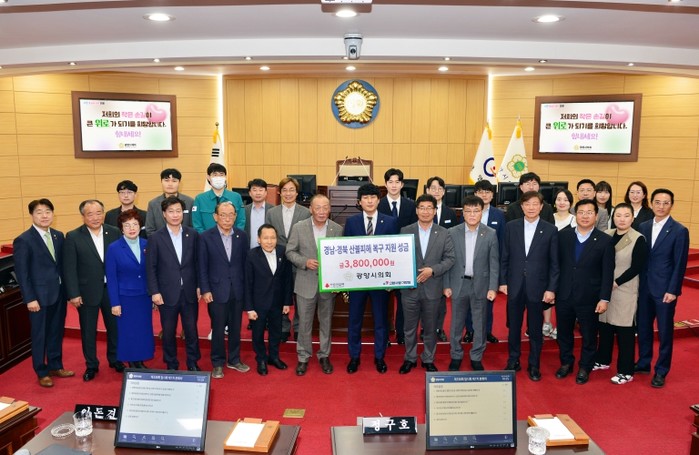 광양시의회는 최근 경남과 경북 지역에서 발생한 대형 산불로 큰 피해를 입은 이재민들을 돕기 위해 자발적인 성금 모금에 나서 따뜻한 이웃사랑을 실천했다.