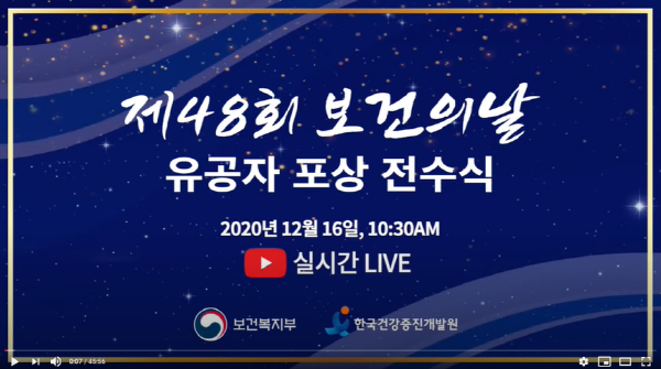 제48회 보건의 날 기념식은 보건복지부 및 한국건강증진개발원 유튜브에서 생중계됐다.