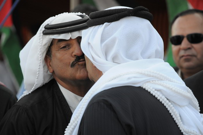 | ▲ 친밀감의 표현으로 요르단 남성들이 볼키스를 하고 있다. (자료사진=요르단 2011.11.25) |