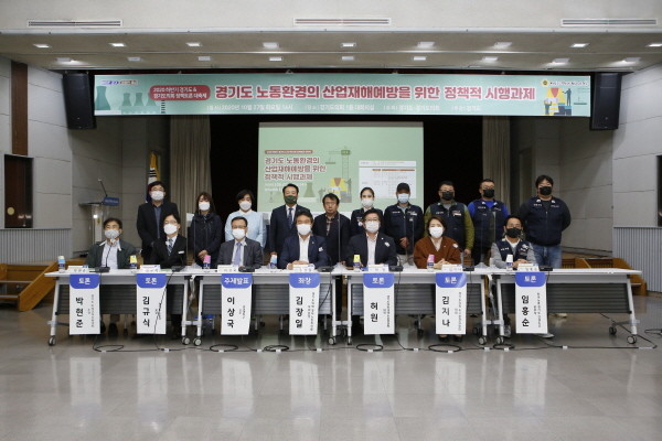 경기도의회 경제노동위원회 김장일 부위원장(더민주, 비례)이 좌장을 맡은「경기도 노동환경의 산업재해예방을 위한 정책적 시행과제」가 10월 27일(화) 경기도의회 1층 대회의실에서 개최됐다.
