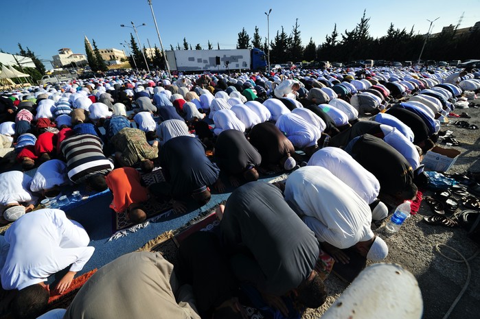 (프레스뉴스)채정병 특파원= 31일(현지시간) 이슬람 최대 명절인 이드 알 아드하(희생제)를 맞아 요르단 무슬림들이 광장에 모여 아침기도를 하고 있다.